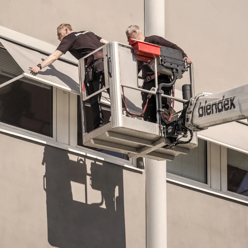 Selv de bedste produkter bør løbende efterspændes, smøres og justeres for at sikre høj driftssikkerhed og lang levetid. Med en Blendex serviceaftale kan du være sikker på, at bygningens solafskærmningssystem bliver efterset og vedligeholdt korrekt.
